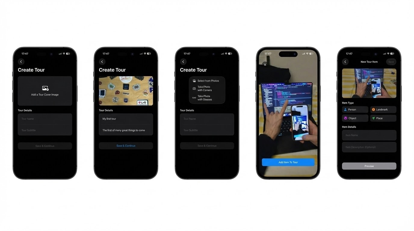 To support stakeholders and venue operators, we built a proprietary content management system that utilizes the glasses for data entry. Organizers can "look and tag" objects in the physical space, using voice commands to label items and train the recognition model in real-time. This reduces the technical barrier to entry, allowing non-technical staff to update tours and manage digital assets directly from the street or showroom floor.
