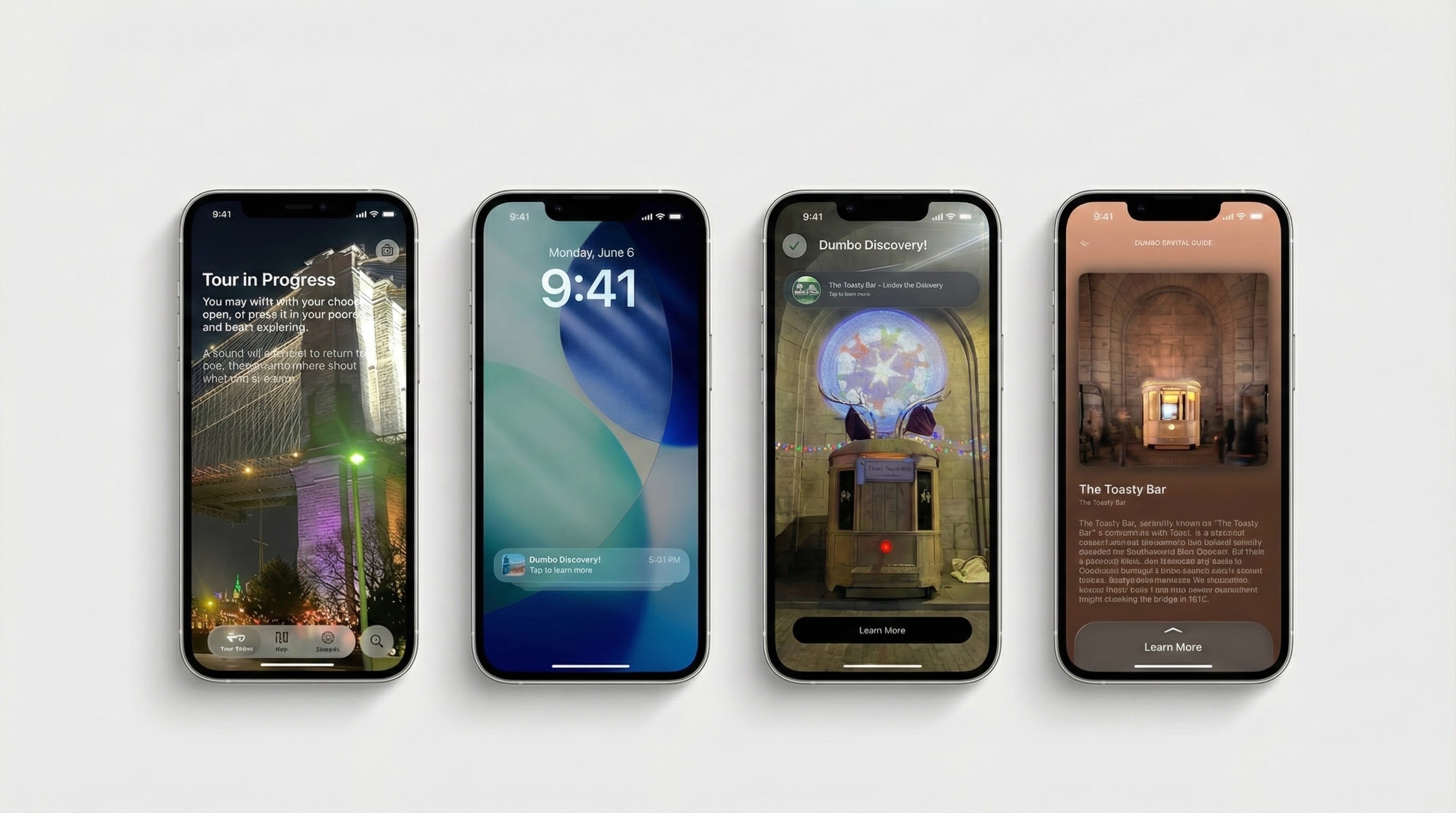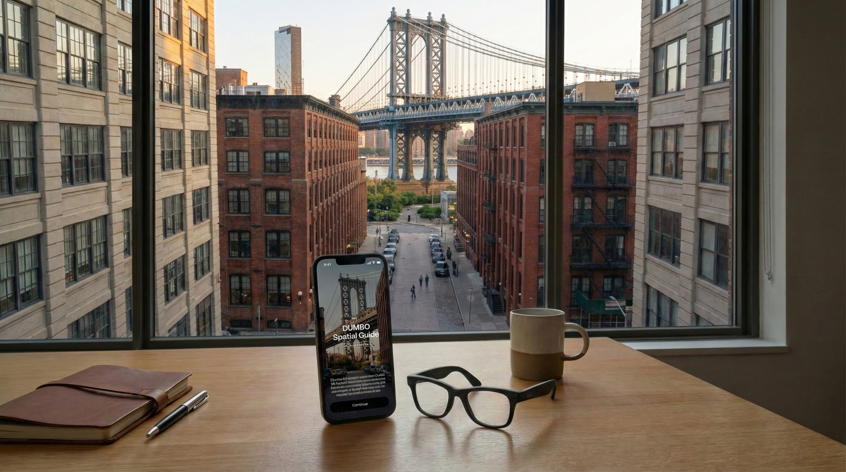 Situated along the East River waterfront, Dumbo is a vibrant Brooklyn neighborhood that serves as New York City's dynamic hub for both technology and the arts. This unique district functions as a massive open-air museum, featuring a dense concentration of galleries, tech startups, and large-scale outdoor public art set against the iconic backdrop of the Manhattan skyline. While this environment offers a rich visual history, traditional digital guides often distract visitors from the immediate surroundings.